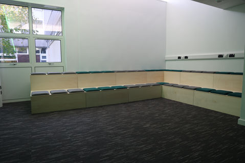 The extended reality (XR) suite is a versatile space that can integrate various immersive technologies, including virtual reality (VR), augmented reality (AR), and mixed reality (MR). The room is designed to accommodate 20 individuals on tiered seating, providing an optimal viewing experience for immersive content.